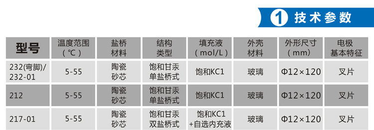 參比電極的技術參數