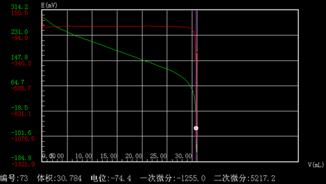 方案成熟,過程注意實(shí)驗(yàn)用氫氧化鈉標(biāo)準(zhǔn)溶液配制好后需標(biāo)定濃度。此化學(xué)反應(yīng)突躍明顯,但需設(shè)置在“中”mV量在100~150mV之間。