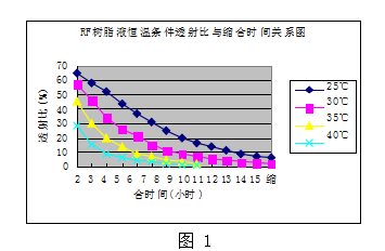 RF樹脂液恒溫條件透射比與縮合時間關系圖