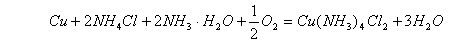 當廢水中含有絡合劑如NH3、EDTA、磷酸酯、檸檬酸鹽和天然有機酸時,它們將與銅離子配位形成非常穩定的可溶性絡合物,從而干擾傳統工藝對銅的處理[5]。以印制電路工業為例,目前印刷電路板的腐蝕多數采用堿氨蝕刻液。該蝕刻液借助氧化、溶解和配合等化學過程,將印制電路板上露出的銅以二氯化四氨合銅的形式溶解下來,其總反應為: