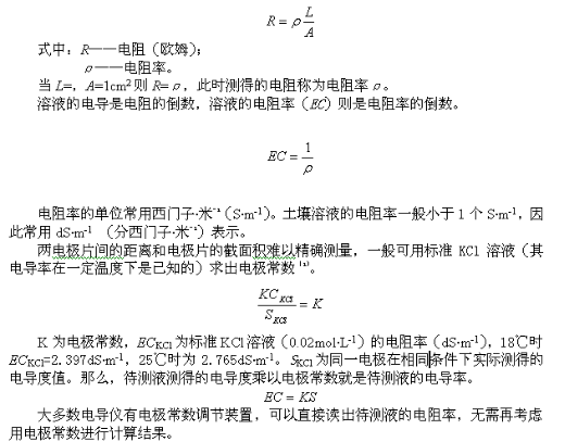 如果土壤溶液中幾種鹽類彼此間的比值比較固定時,則用電導率值測定總鹽分濃度的高低是相當準確的。土壤浸出液的電導率可用電導儀測定,并可直接用電導率的數值來表示土壤含鹽量的高低。